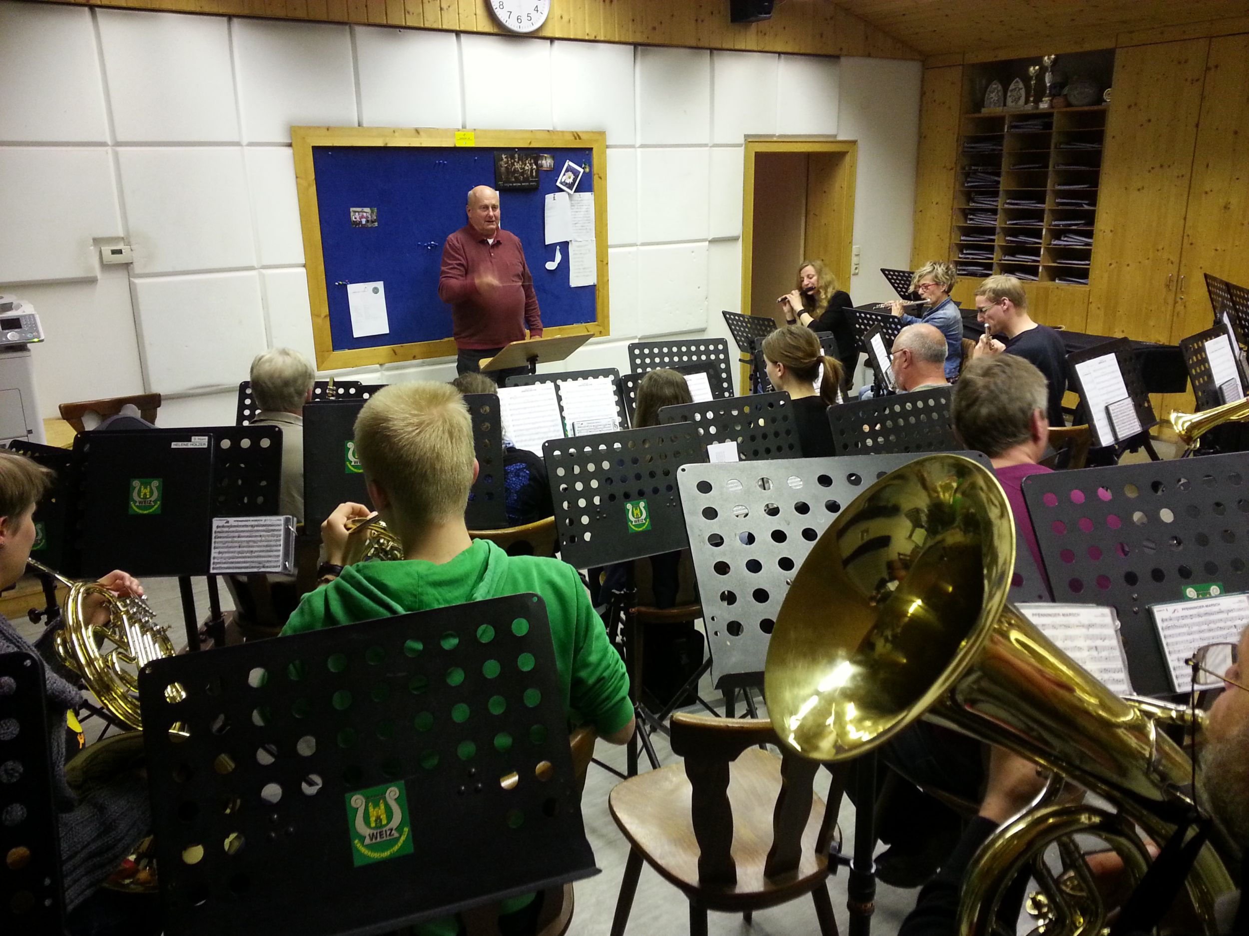 Anlässlich des 70. Geburtstages unseres Bassisten Rudi Paier lud er nach der wöchentlichen Probe zu einer Jause. Davor durfte er noch den Platz am Dirigentenpult einnehmen und den Geburtstagsmarsch dirigieren.