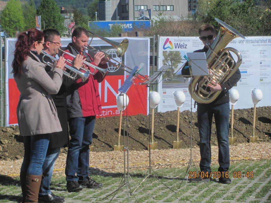 Der Spatenstich für den neuen Bauhof in Weiz wurde von unserem Quartett musikalisch begleitet.