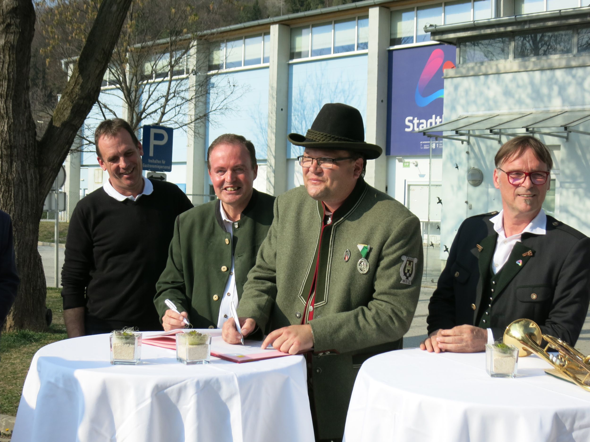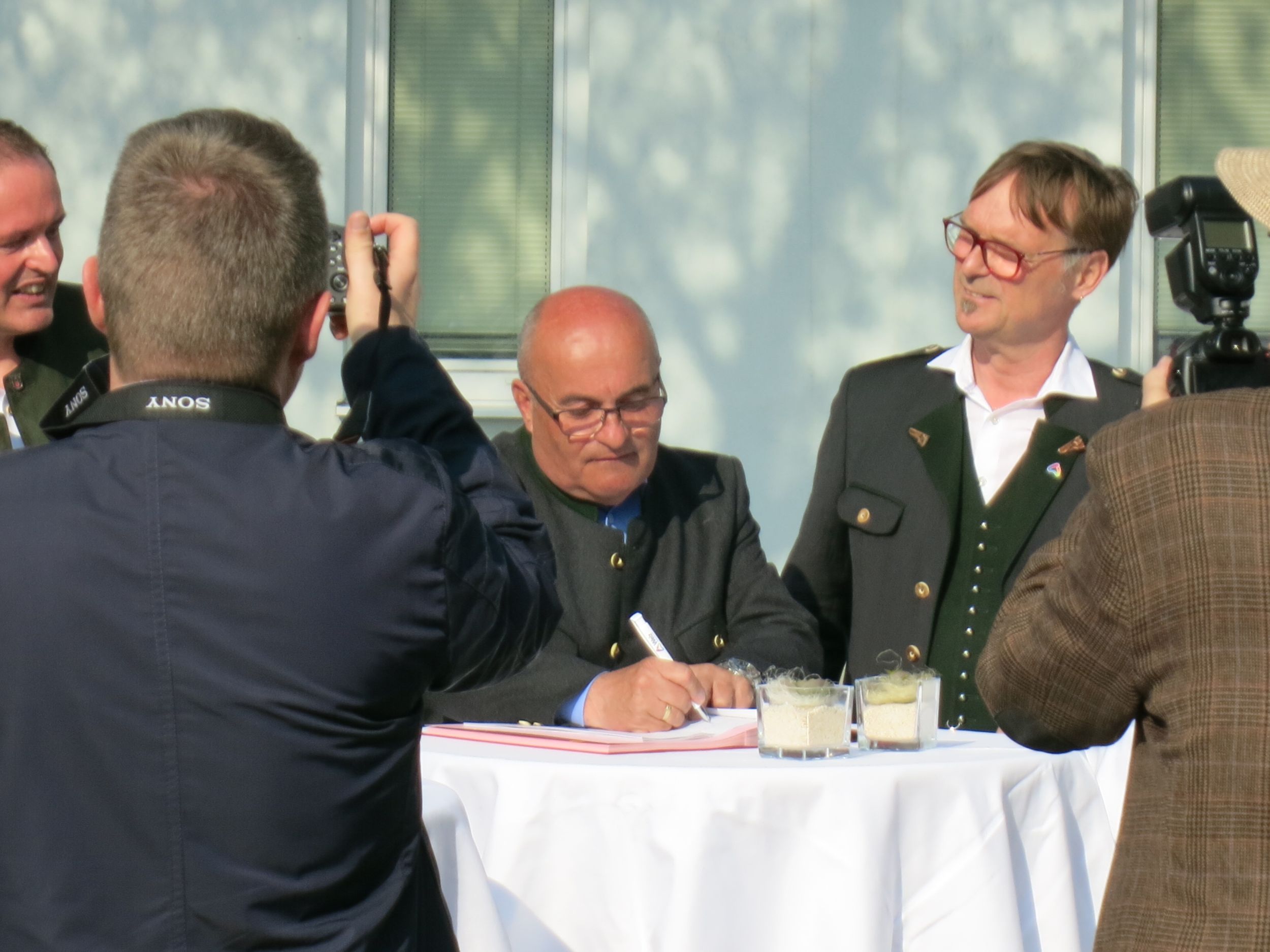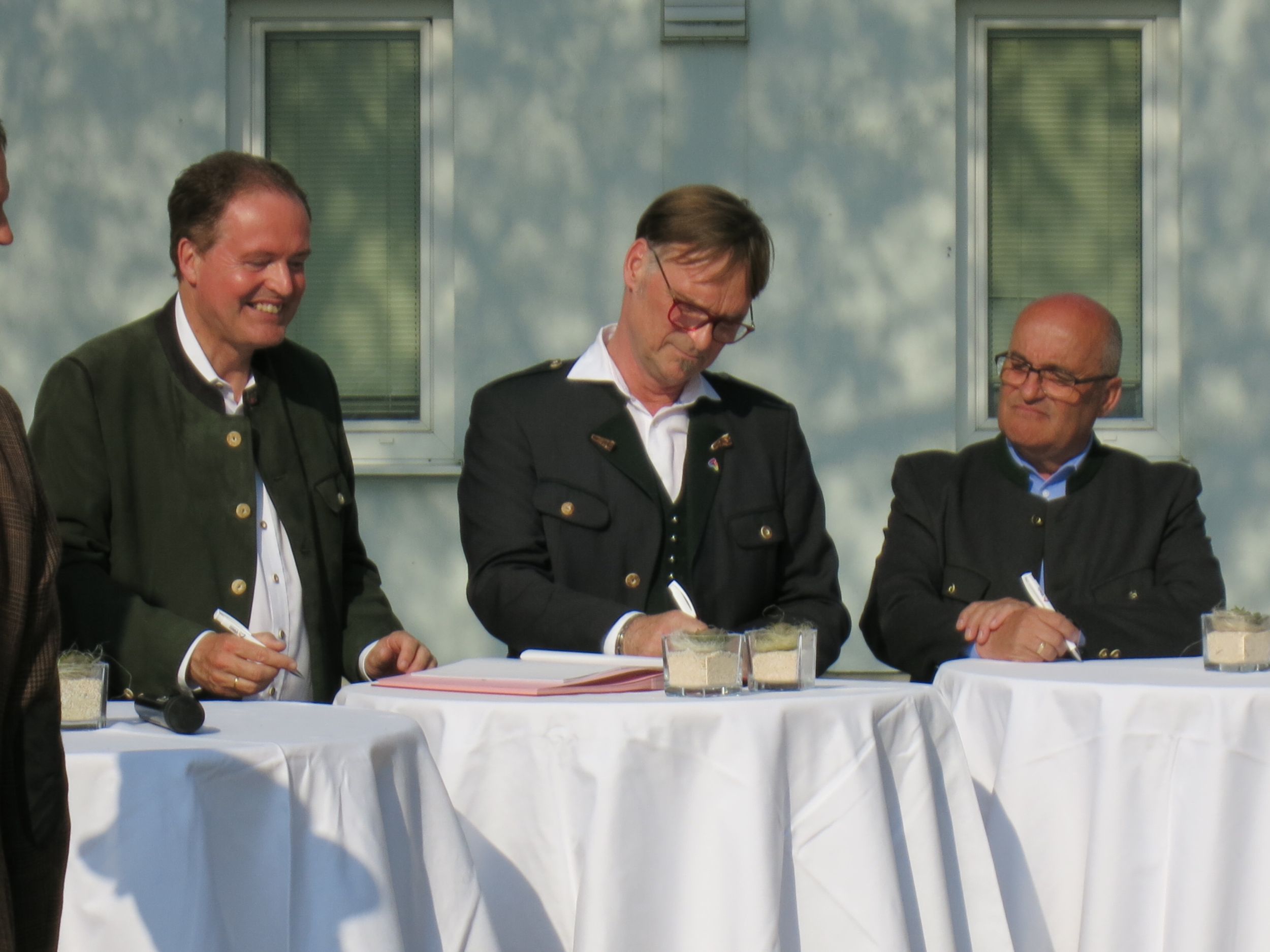 Am Gelände vor dem derzeitigen Kolping-Haus fand die festliche Unterzeichnung der Fördervereinbarung zur Errichtung unseres neuen Probelokales statt.