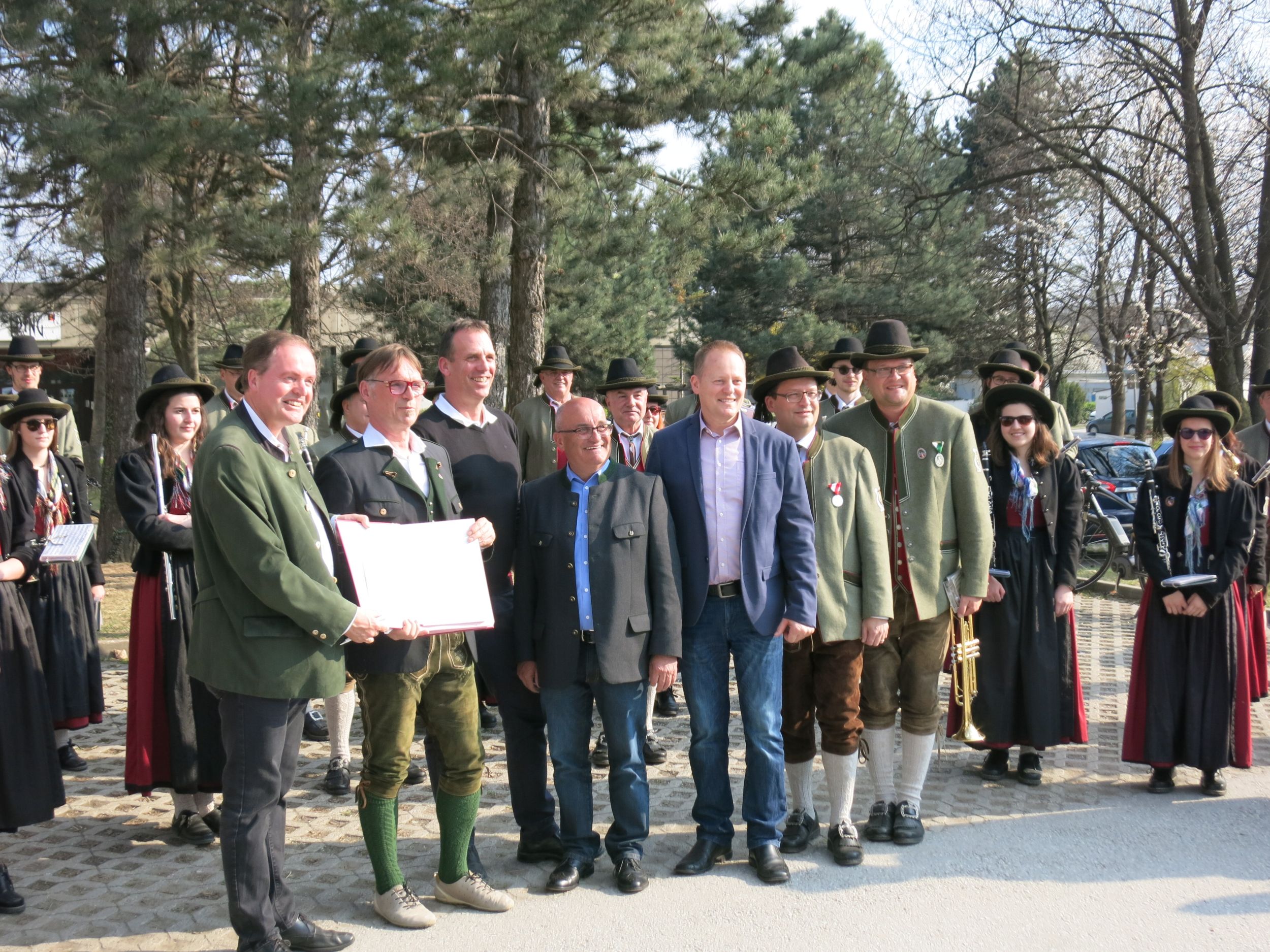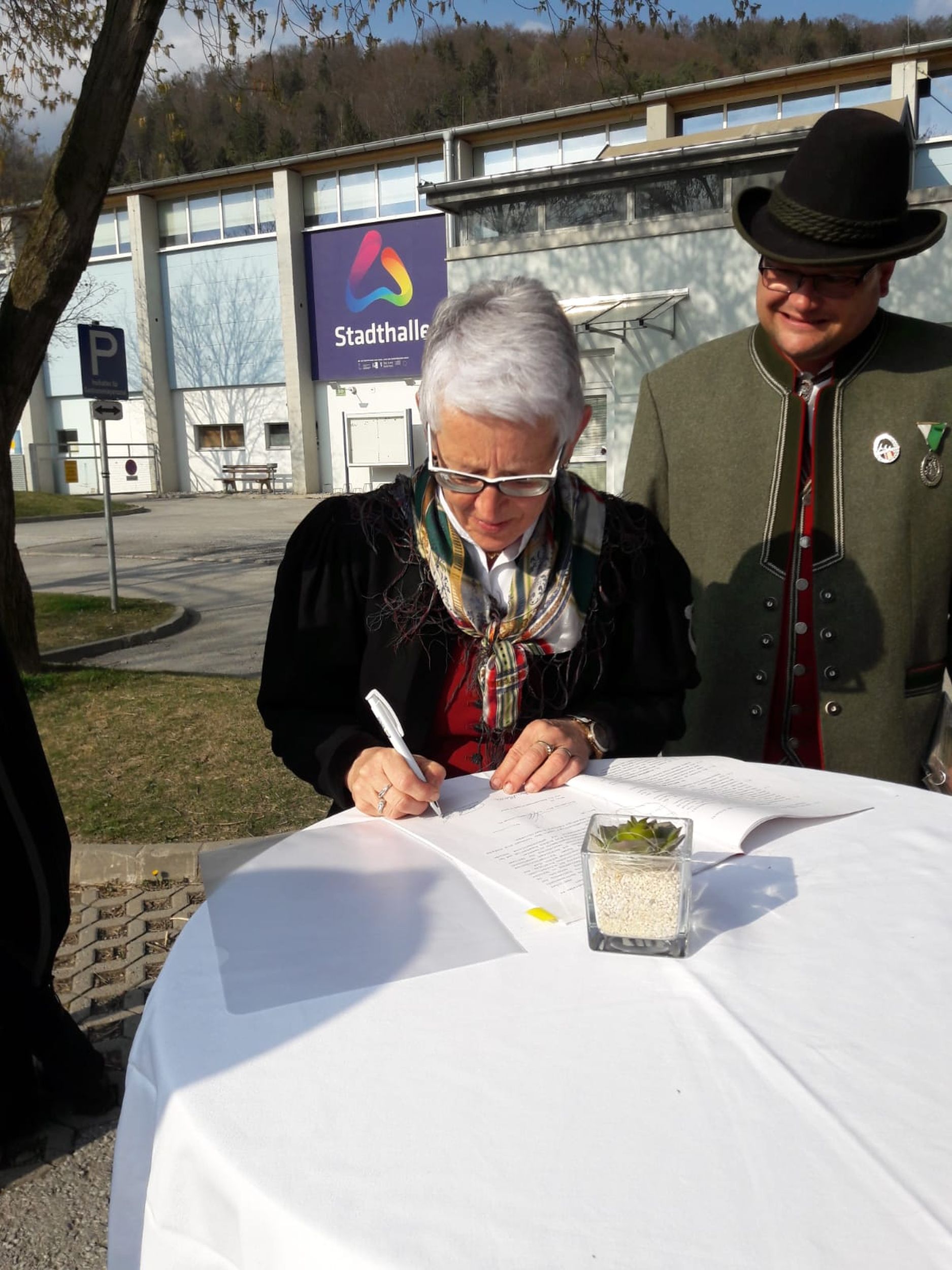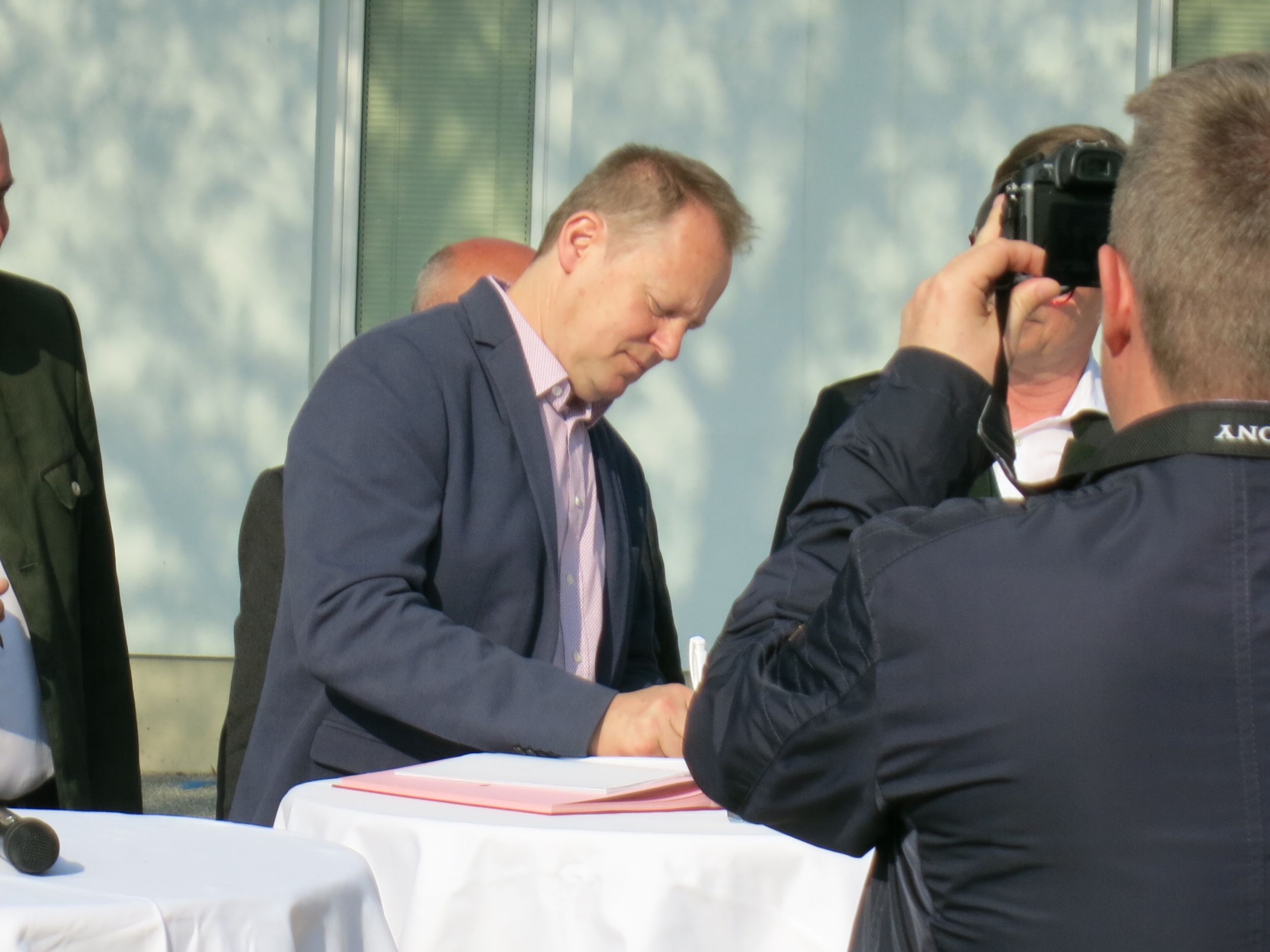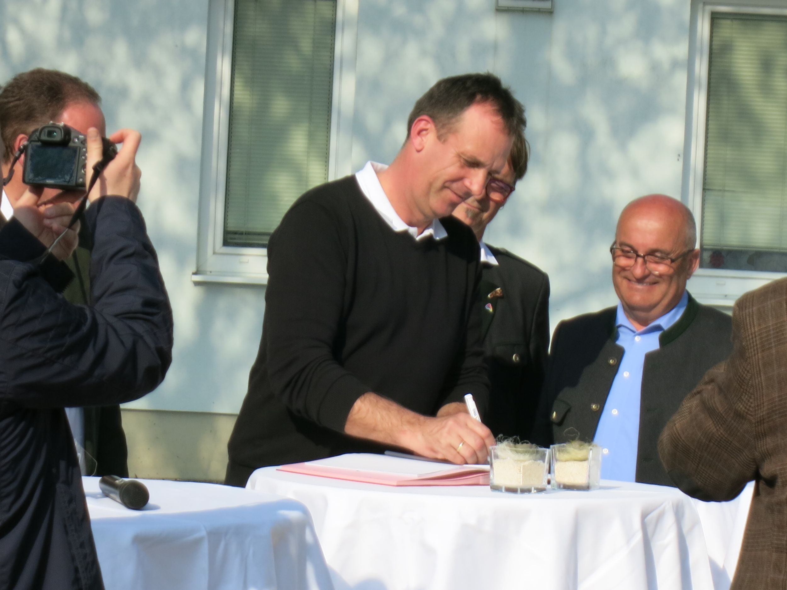 Am Gelände vor dem derzeitigen Kolping-Haus fand die festliche Unterzeichnung der Fördervereinbarung zur Errichtung unseres neuen Probelokales statt.